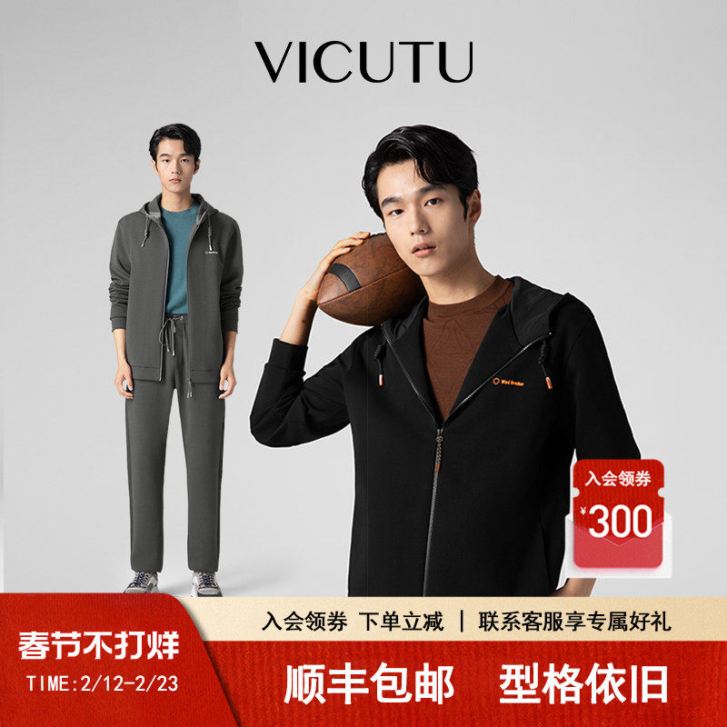 VICUTU Men's Jacket Spring Sports Fashion Hooded Business Commuter Simple Versatile Gray Top