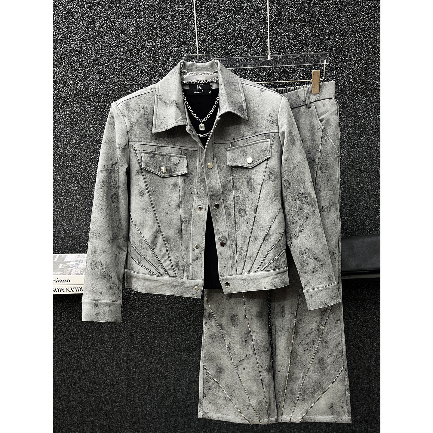 High-end American retro deconstructed gray jacket suit men's autumn new loose jacket with pants