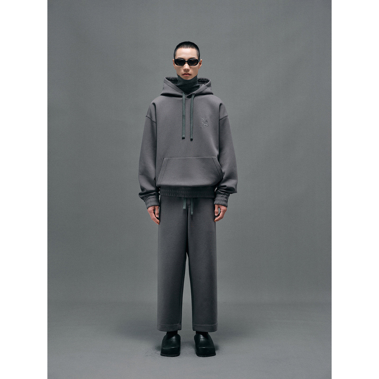 【NANS】40-count cotton-blend air layer material embroidered design silhouette hooded sweatshirt/straight cropped pants