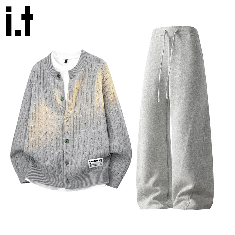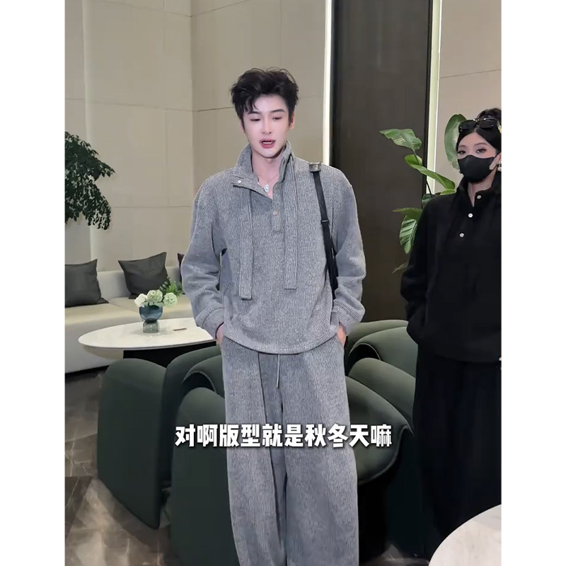 The design sense is lazy, men's sweatshirt set, autumn relaxation, loose and simple, two-piece OOTD outfit, a complete set
