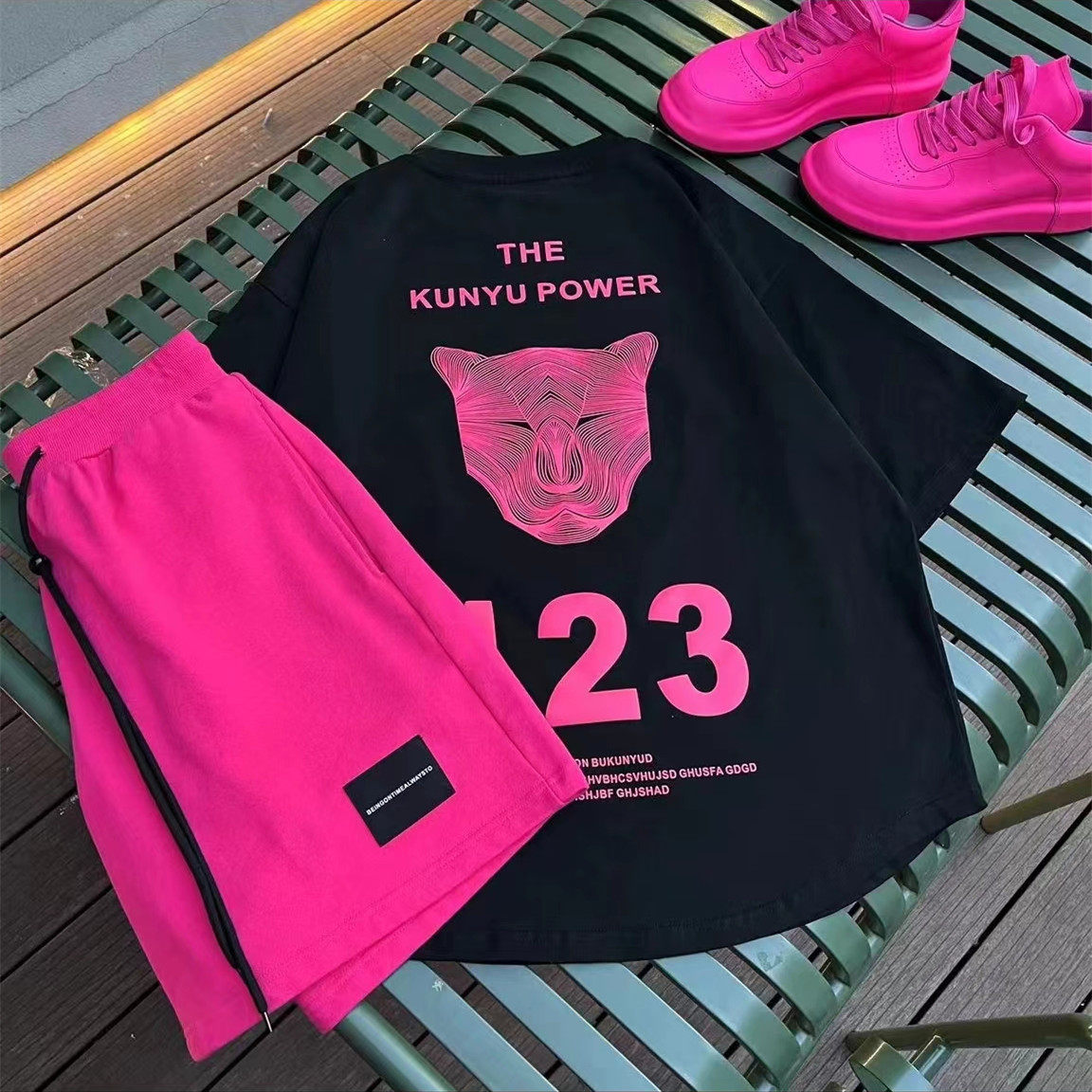 Trendy brand short-sleeved shorts suit men's summer fashion trend leopard head loose casual sports T-shirt with a set
