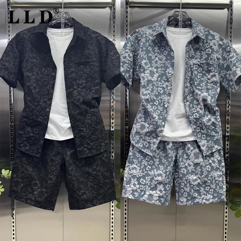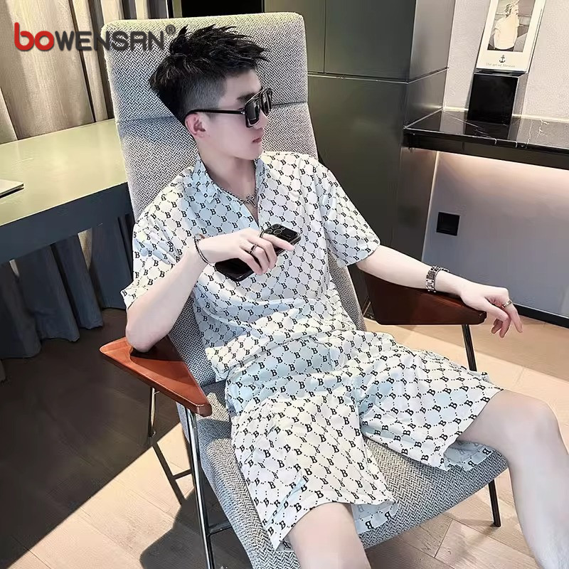 ALLIN short-sleeved shirt casual shorts is a complete set of high-end light luxury summer men's outfits