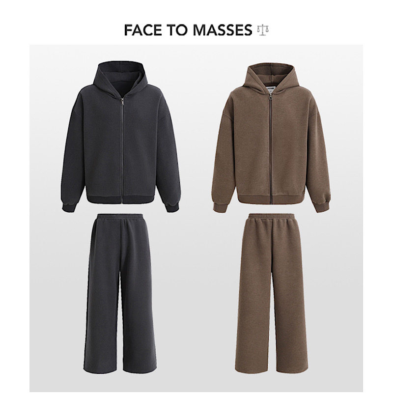 FTMS Fall & Winter Heavy 700G American Reversible Plush Dog Walking Set Short and Wide Boxy Hoodie Zipper Jacket Sweatpants