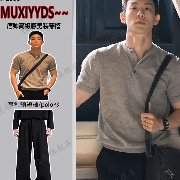 Henry collar short-sleeved polo shirt set summer mature and stable men's set with a handsome cuff tightening T-shirt
