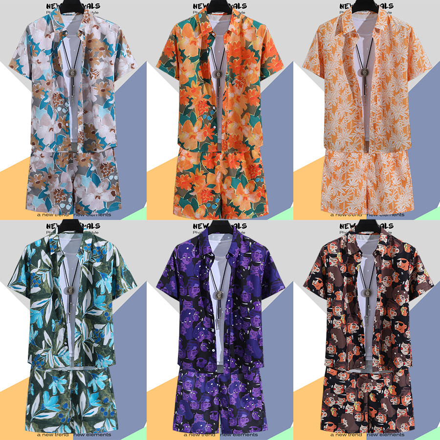 Hainan Beach Shirt Men's Suit Sanya Travel Hawaii Plus Size Casual Flower Shirt Men's Printed Capri Pants