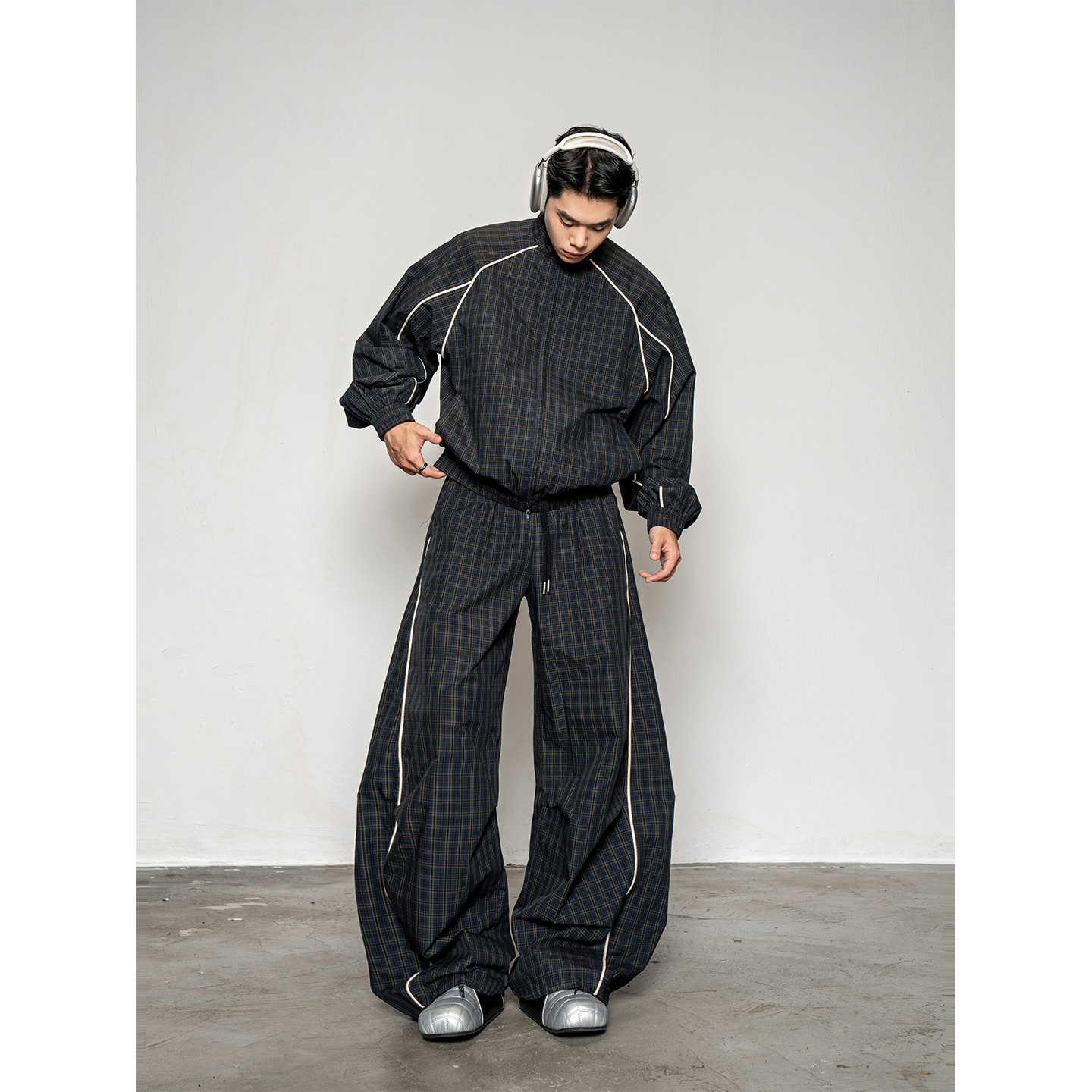DBWDoublewin Deconstructed Vintage Contrast Plaid Jacket Men's Silhouette Cargo Slacks Tracksuit