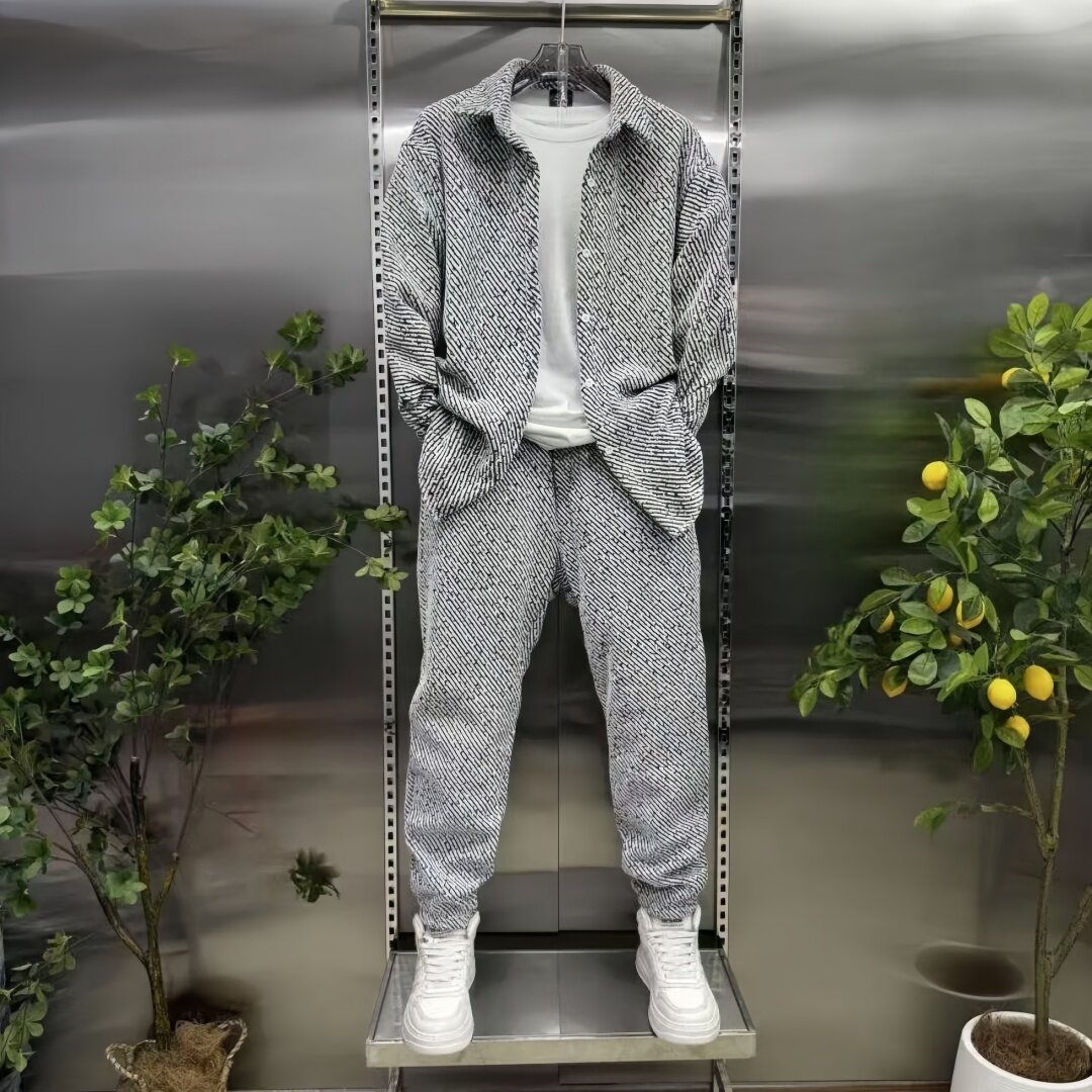 Autumn new shirt casual suit men's trend high-end twill lapel shirt jacket sweatshirt two-piece set