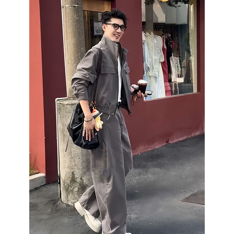 American retro stand-up collar cropped cargo jacket jacket for men to wear a complete set of cool and handsome autumn high-end suits