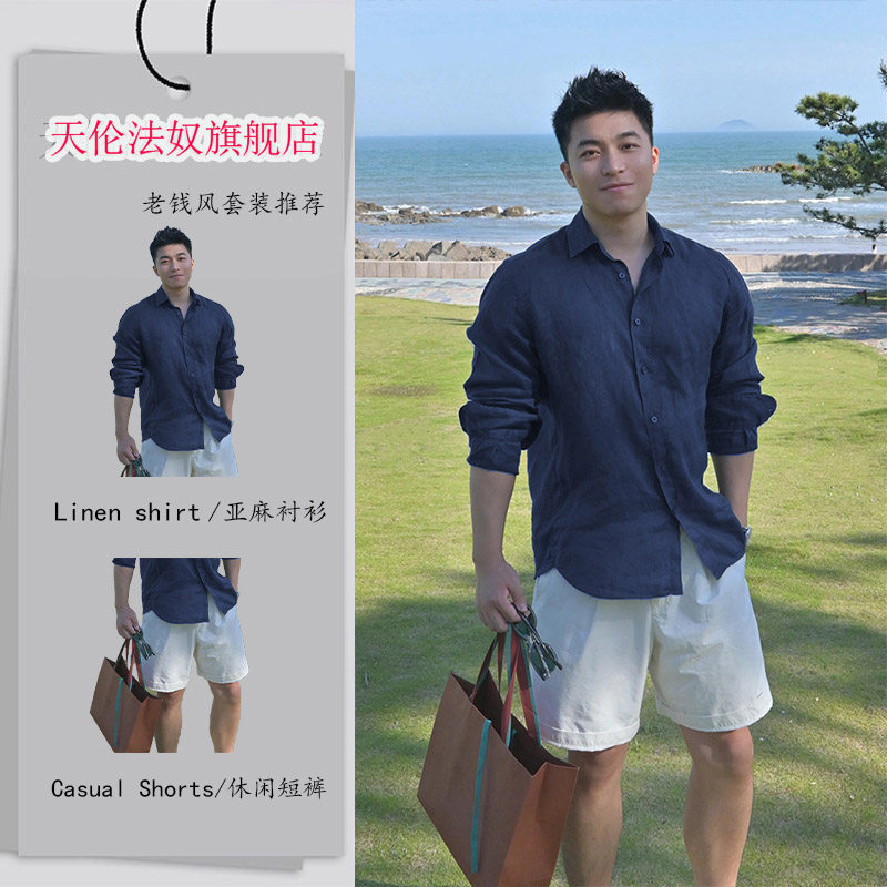 Old money style vacation outfit men's suit summer high-end light, light and breathable linen shirt with shorts