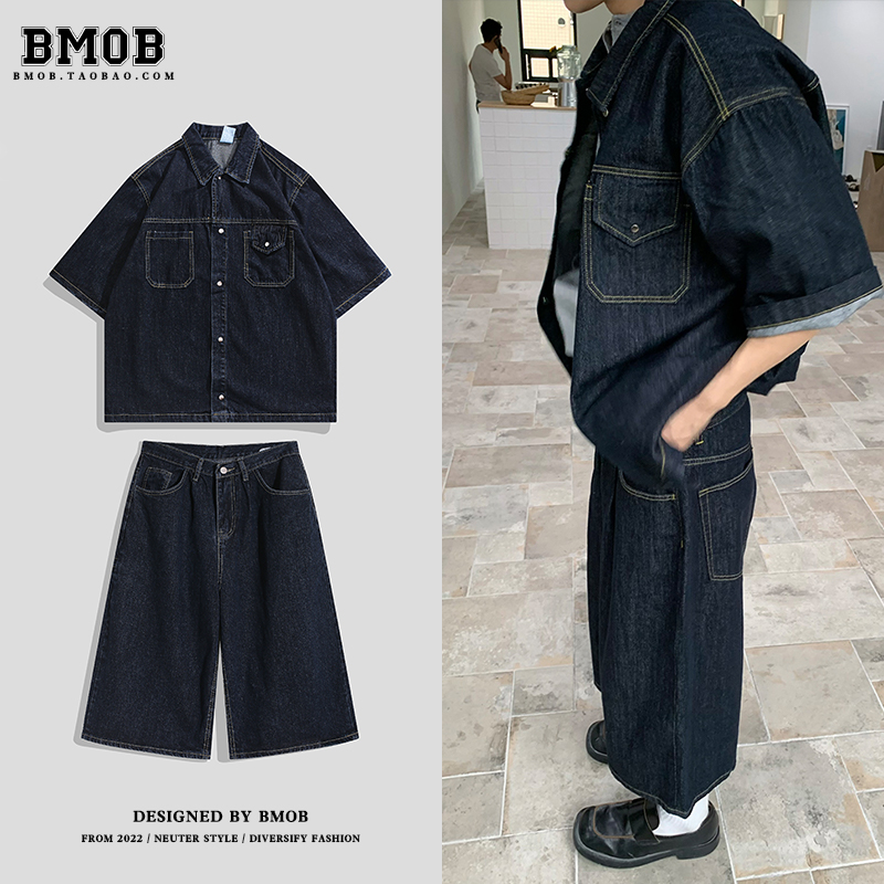 Holocene American fashion brand summer design casual ruffian suit fake two fashionable trousers with a complete set