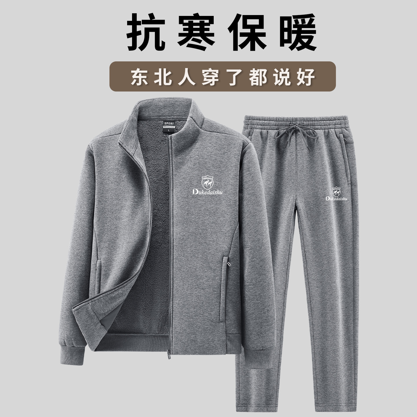 Men's high-end brand sportswear 2025 new autumn and winter fleece thickened stand-up collar lambswool sportssuit men's trend