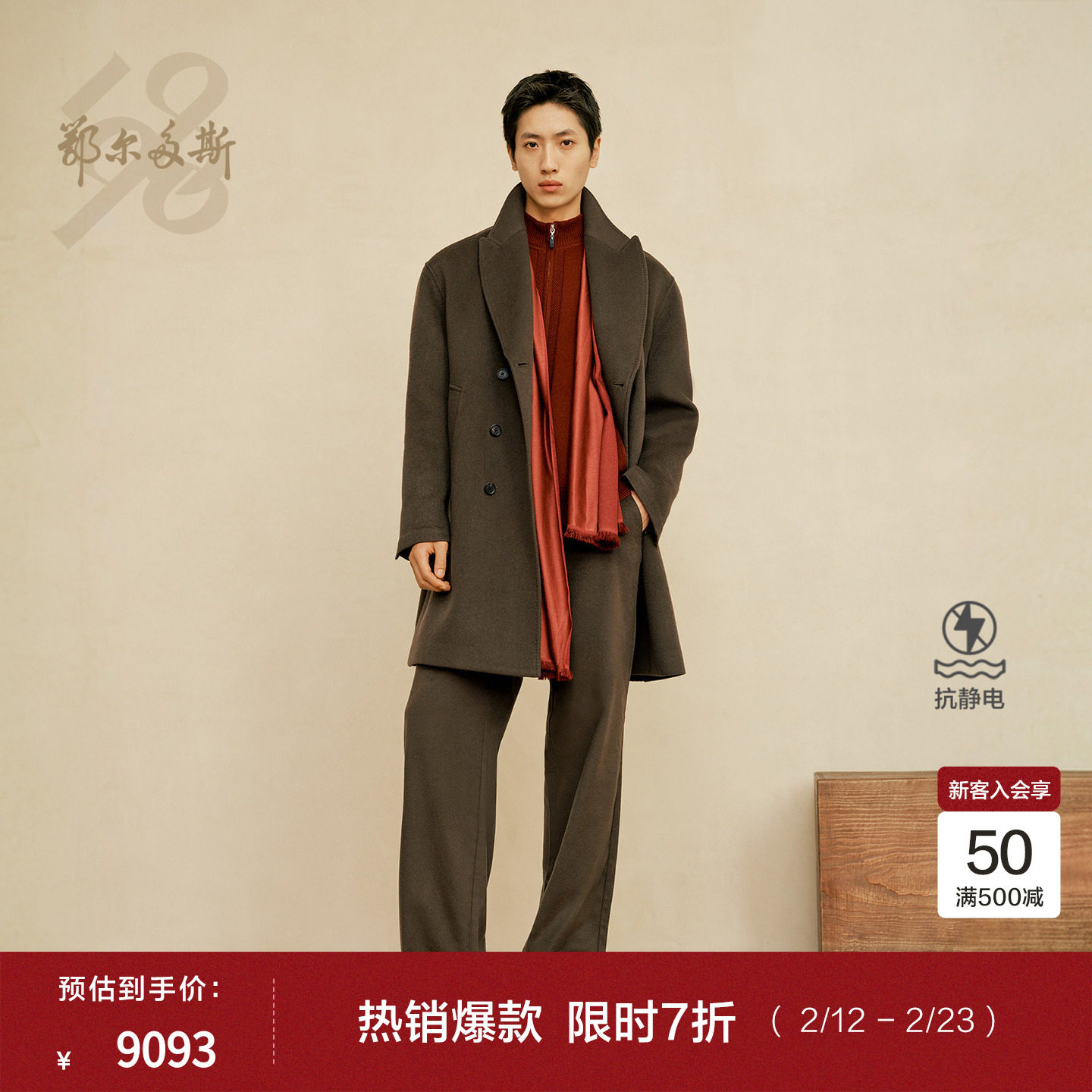 [Anti-static] Ordos 1980 new product suit collar double-breasted mid-length men's cashmere coat 25 spring and summer