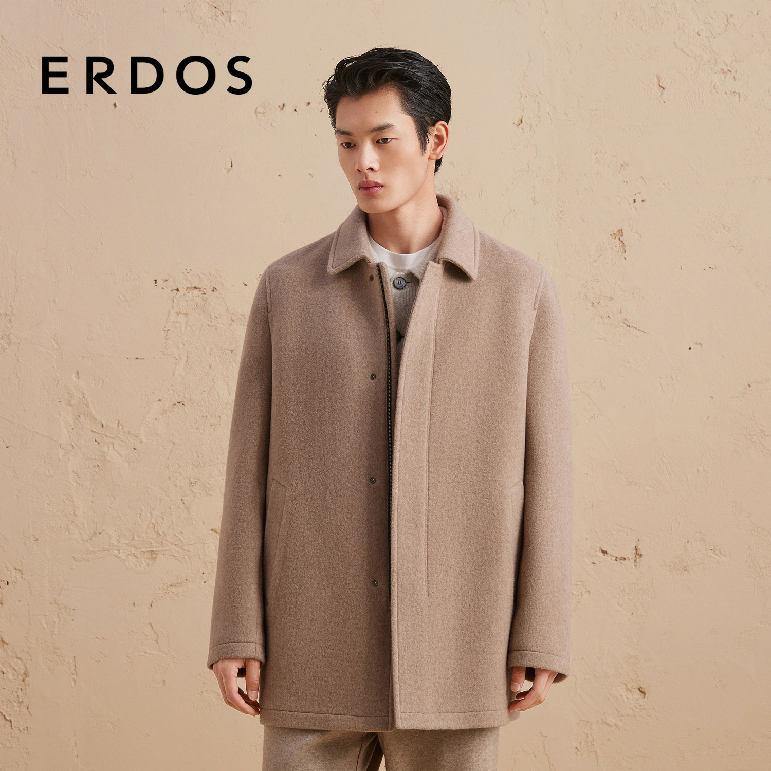 ERDOS lapel cashmere coat for autumn/winter men's long undyed cashmere color with a concealed button zipper jacket
