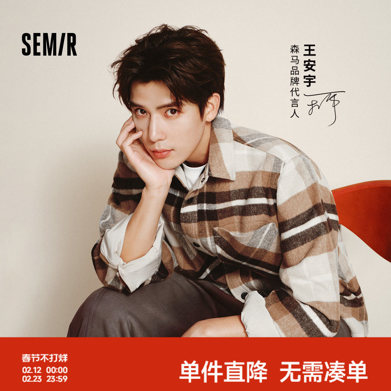 Wang Anyu shopping mall same Semir woolen jacket plaid shirt 2025 new retro top for men and women