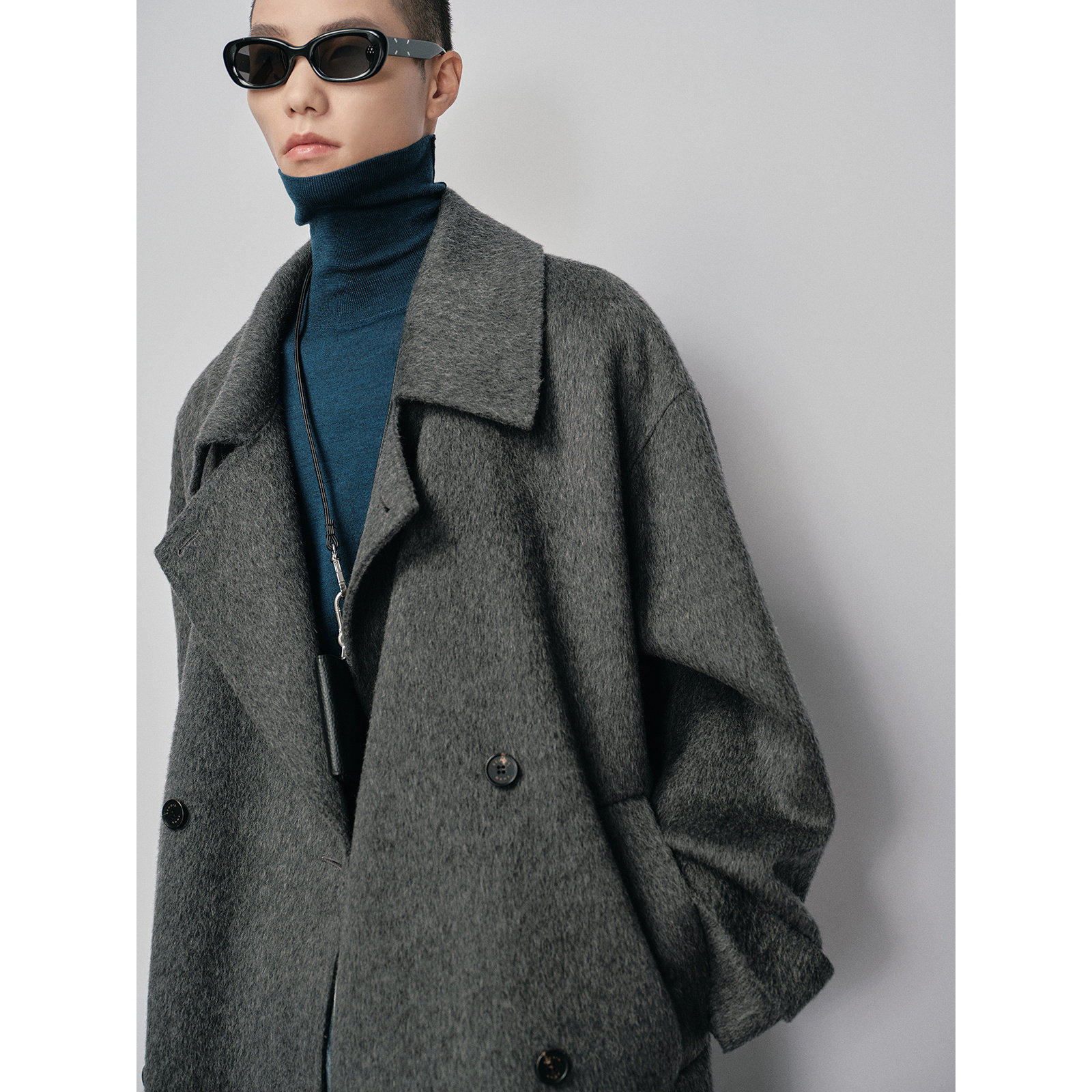 TRENDYWU classic old money "modern" gabardine coarse wool loose double-breasted chunky coat