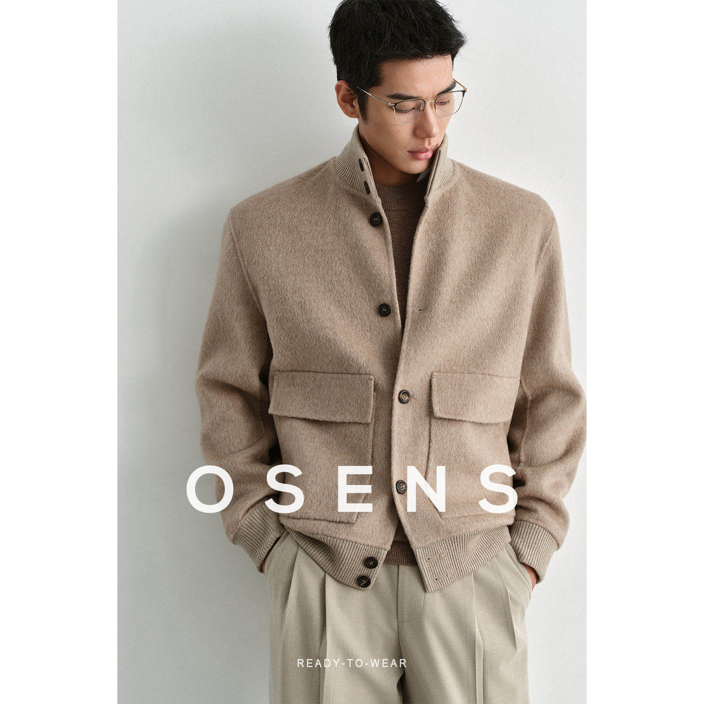 OSENS camel velvet mulberry silk wool classic half high neck stand-up neck cropped reversible wool jacket jacket men's winter