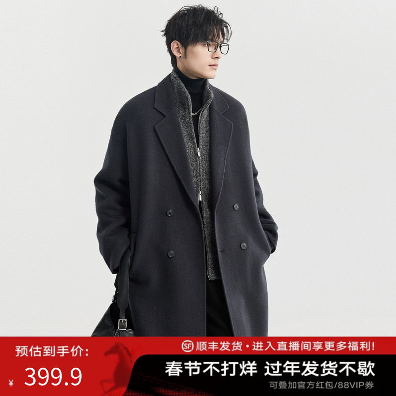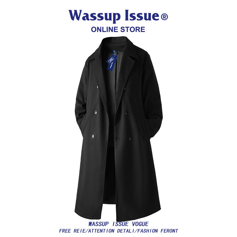 WASSUP ISSUE mid-length woolen coat men's spring and autumn high-end over-the-knee trench coat woolen jacket for men