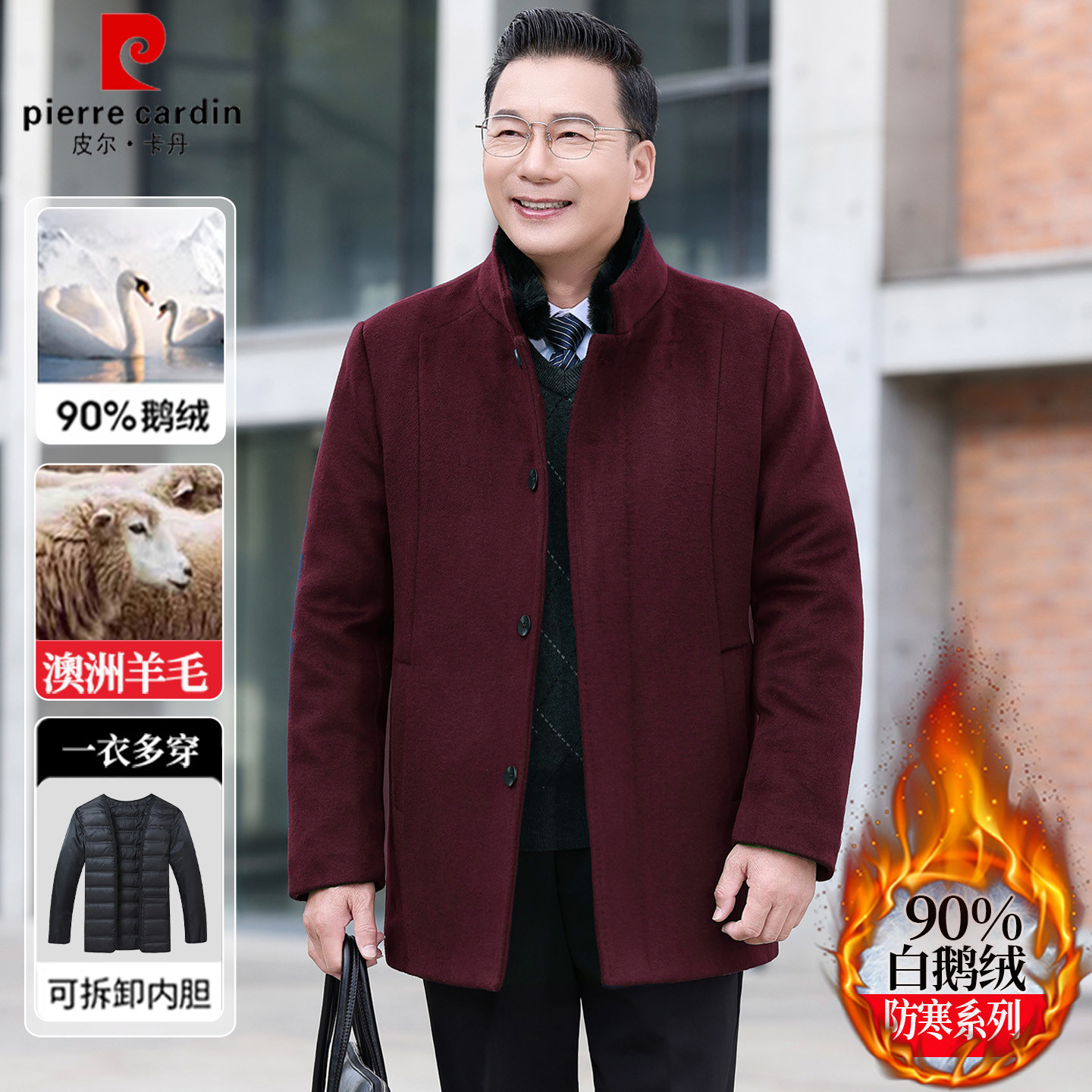 Pierre Cardin, wool coat, male standing collar, father-in-law, winter down jacket, red wedding banquet, natal year