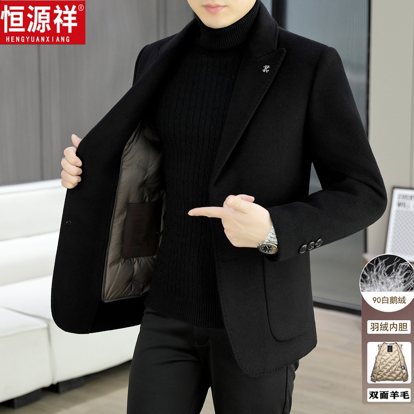 Hengyuanxiang men's thickened reversible suits, autumn and winter cashmere woolen coats, cropped goose down liner woolen jackets