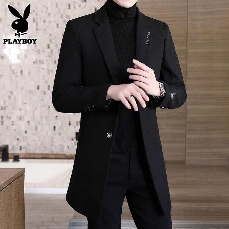 Playboy wool coat, men's mid-length trench coat, autumn and winter new trendy cashmere woolen jacket