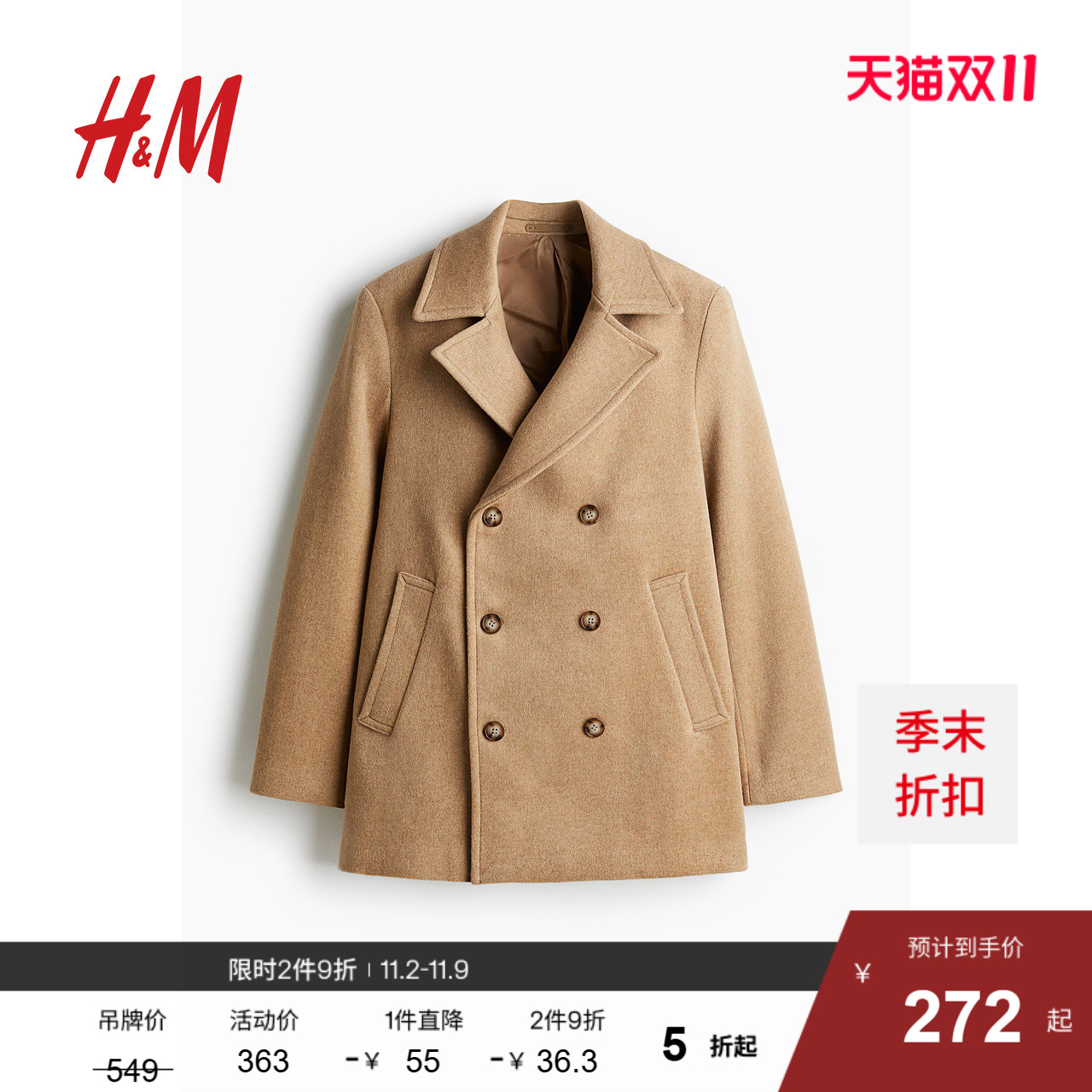 HM Men's Tweed Coat Winter Standard Fit Lapel Warm Navy Jacket 1245629