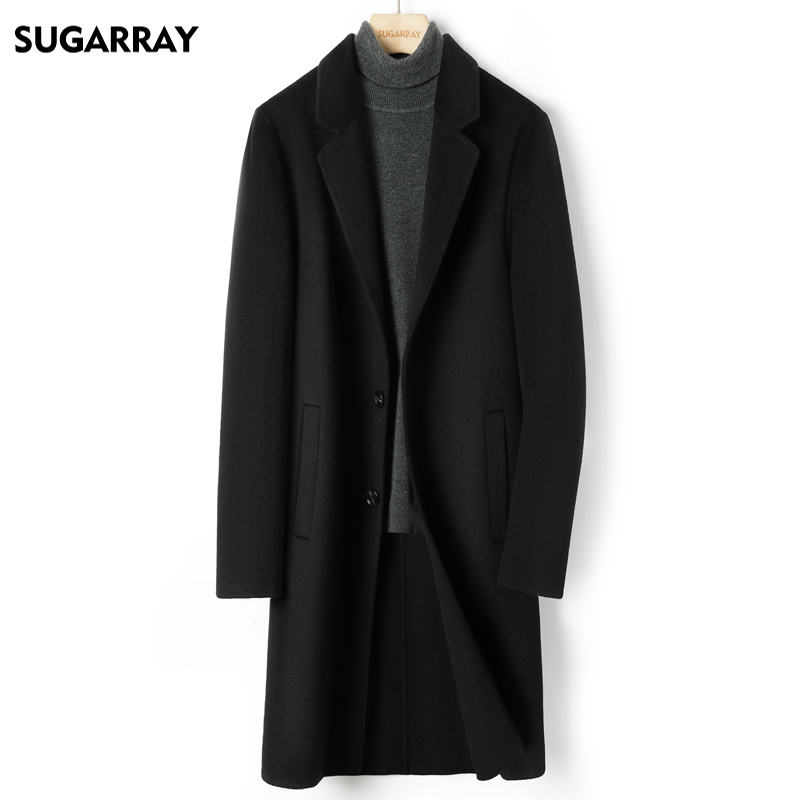 Sugar Ray Men's Reversible Cashmere Over the Knee Long Coat Loose Thickened Double-breasted Fall/Winter Wool Coat
