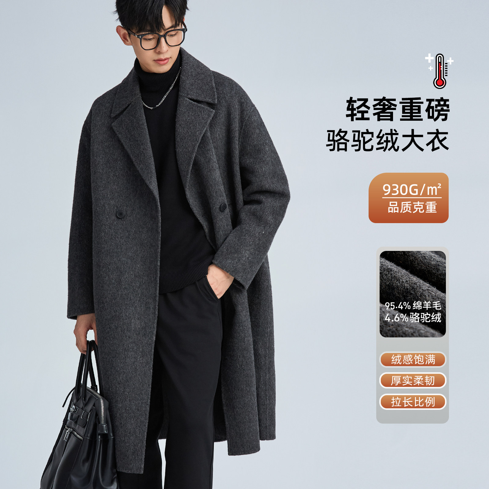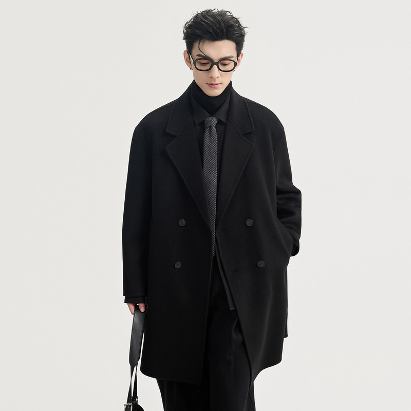One hand is long, high-end goose down lining, winter thickened double-sided wool coat, men's mid-length small jacket