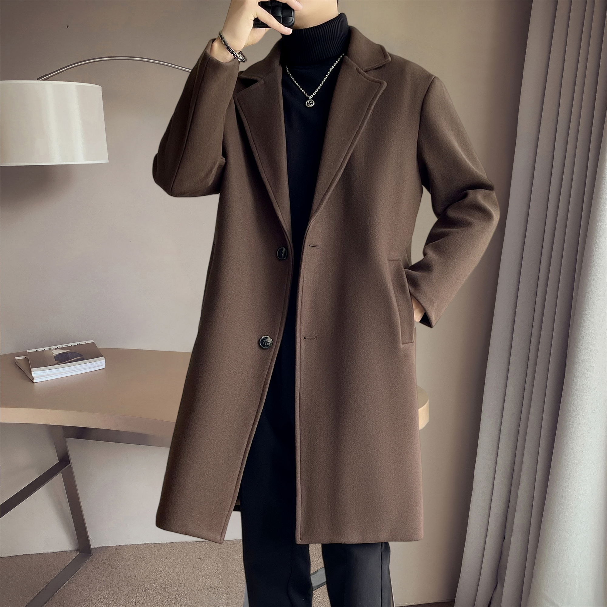Autumn and winter Maillard Korean woolen coat men's trend solid color casual mid-length men's trench coat tweed