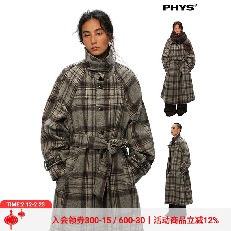 【Same offline style】Physics Boy "Urban Frost" wool retro plaid raglan square neck woolen coat