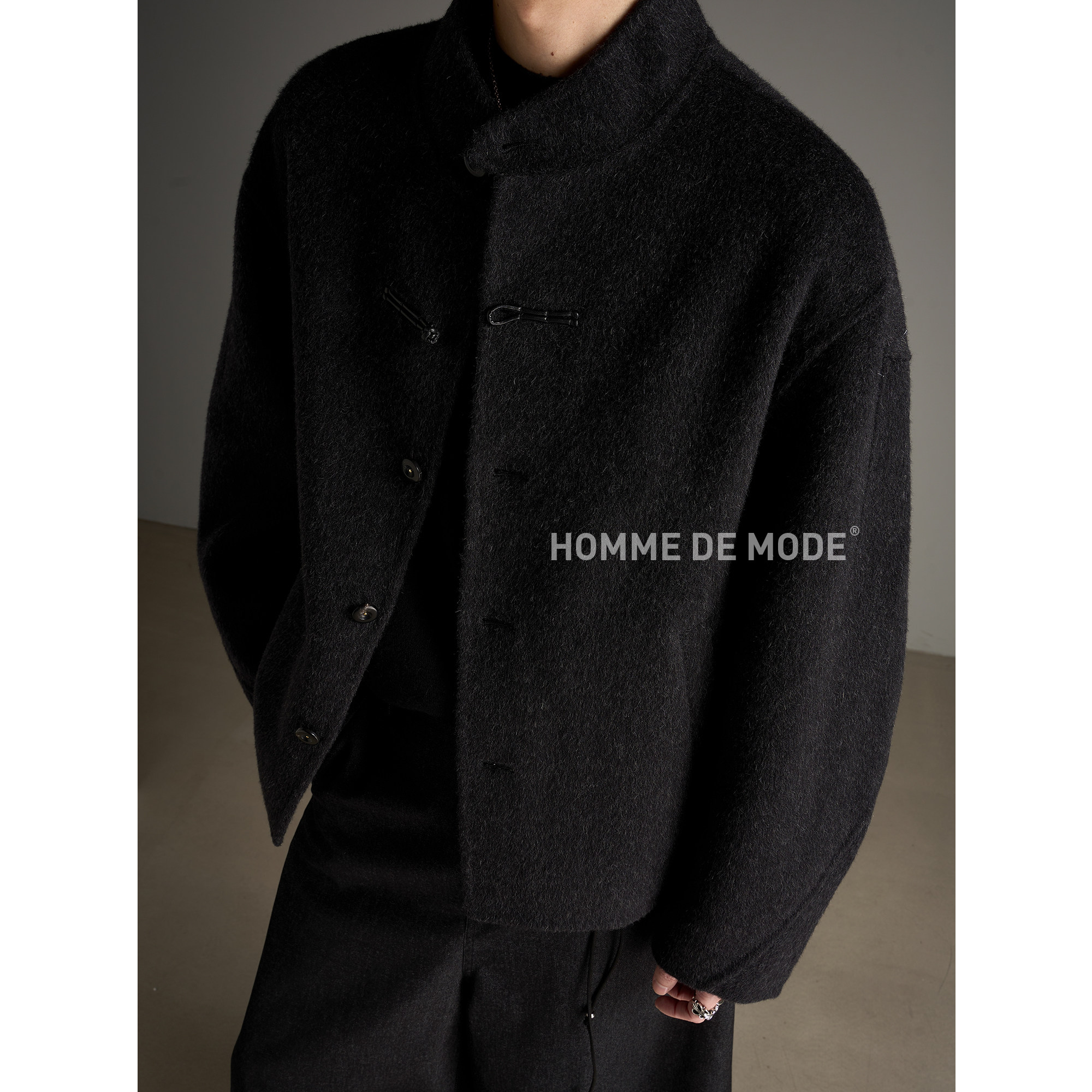 HOMME DE MODE [100% sheep wool] New Chinese style reversible wool cropped silhouette coat jacket