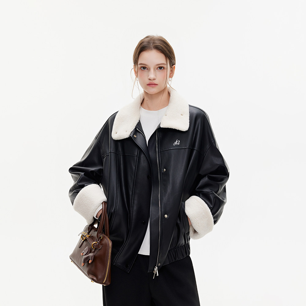 Leather jacket women's 2025 autumn new black cool sassy loose PU motorcycle American fleece thickened leather jacket