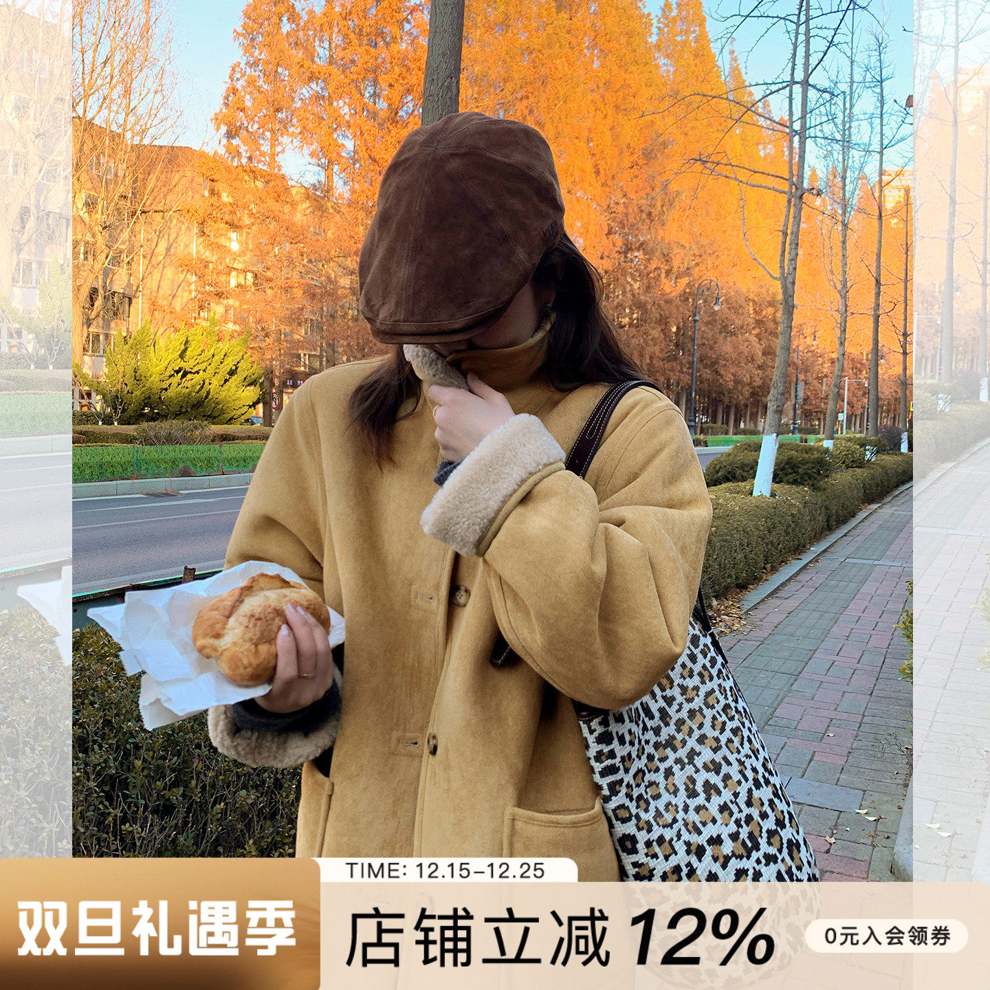Azmi high-end retro fur integrated lambswool jacket women's winter new loose fleece thickened top clothes