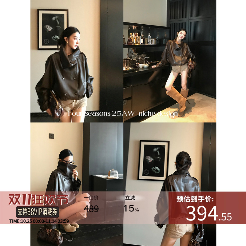 Brown leather jacket spring and autumn 2025 new PU leather jacket American retro cool wind bell Chuxi is the same style