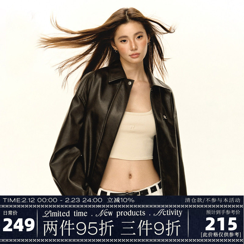 NEVA HU [7.5% off in stock] black suit leather jacket women's PU leather high-end loose casual suit
