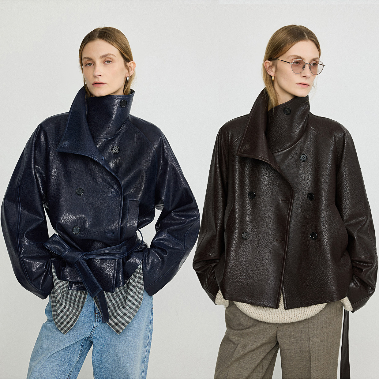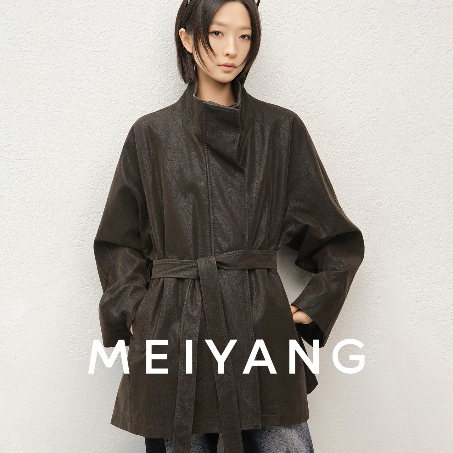 MEIYANG Hot American Leather Jacket 26 Spring Handsome Elegant Stand Up Collar Belt PU Jacket - Monday