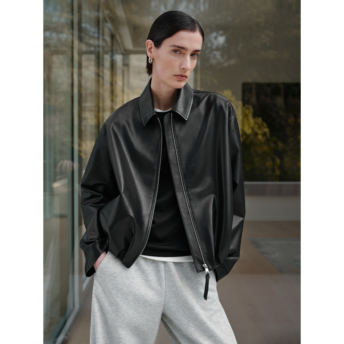 MADE NOTHING leather jacket 005 classic autumn black simple slim fit retro motorcycle zipper jacket jacket for women