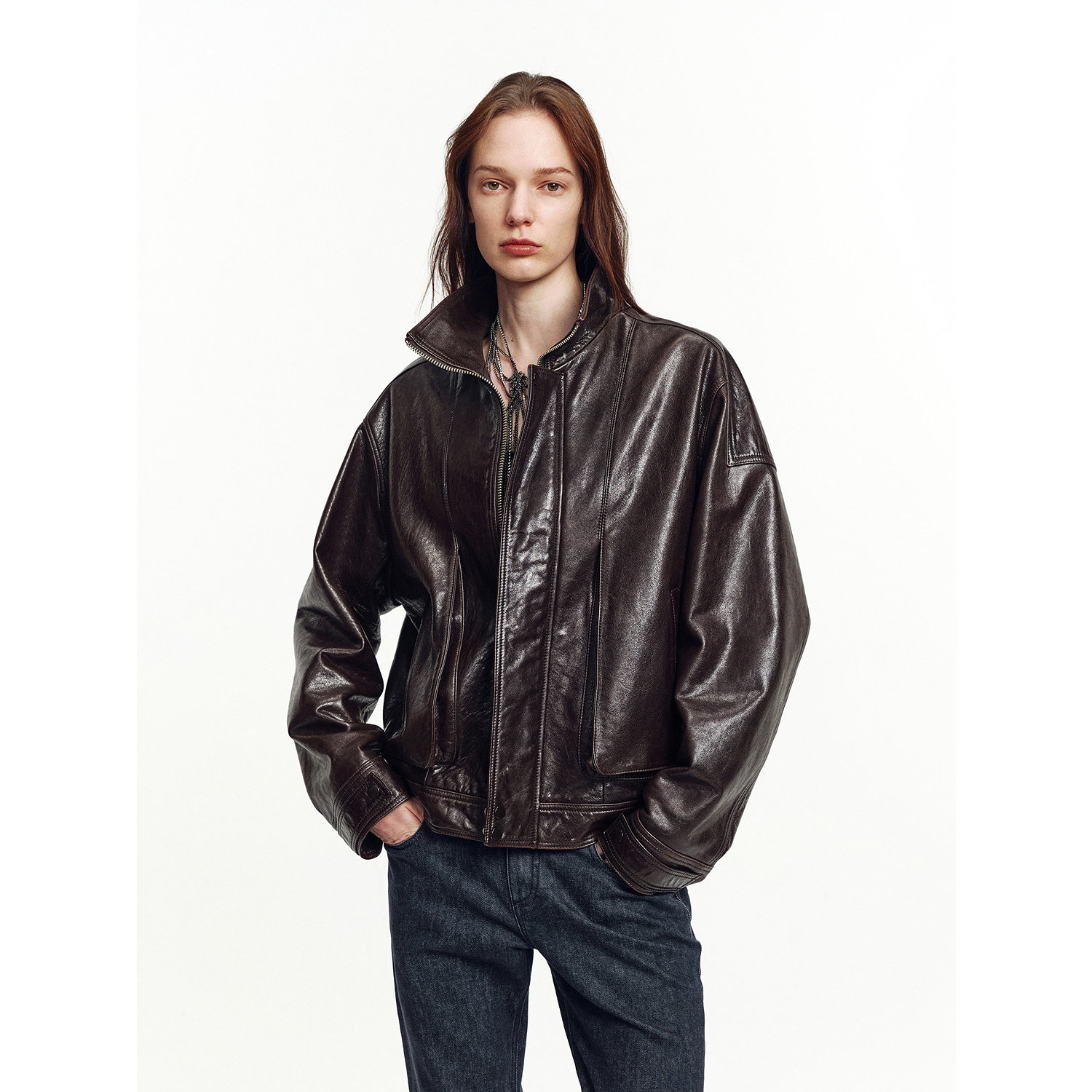 Amyy Studios JIN Calf Leather Embryo Cotton Cashmere Fur Integrated Lapel Pilot Jacket