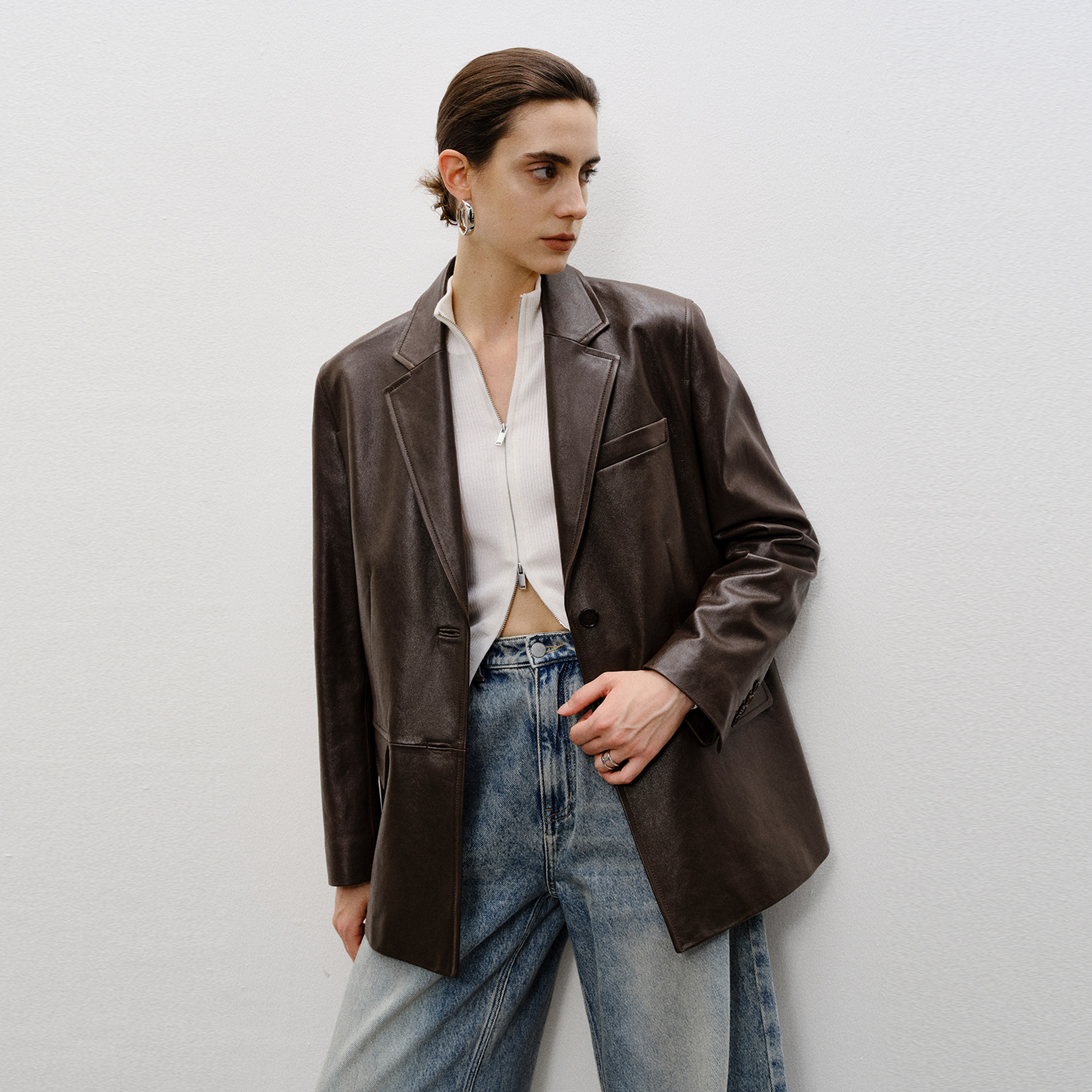MSBEAST imported sheepskin suede silhouette Maillard leather jacket blazer women丨Nordic harbor
