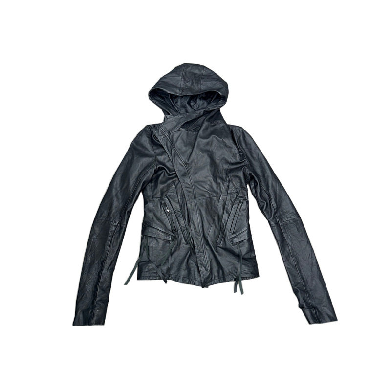 ATANOTHINGNESS star identical "dark burst leather shirring adjustable leather jacket jacket
