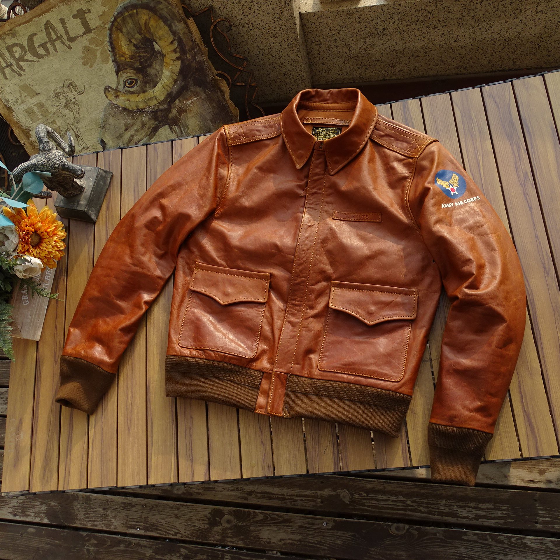 Beeswax horseskin escape A2 flight suit vegetable tanned batik small young horseskin leather leather coat man