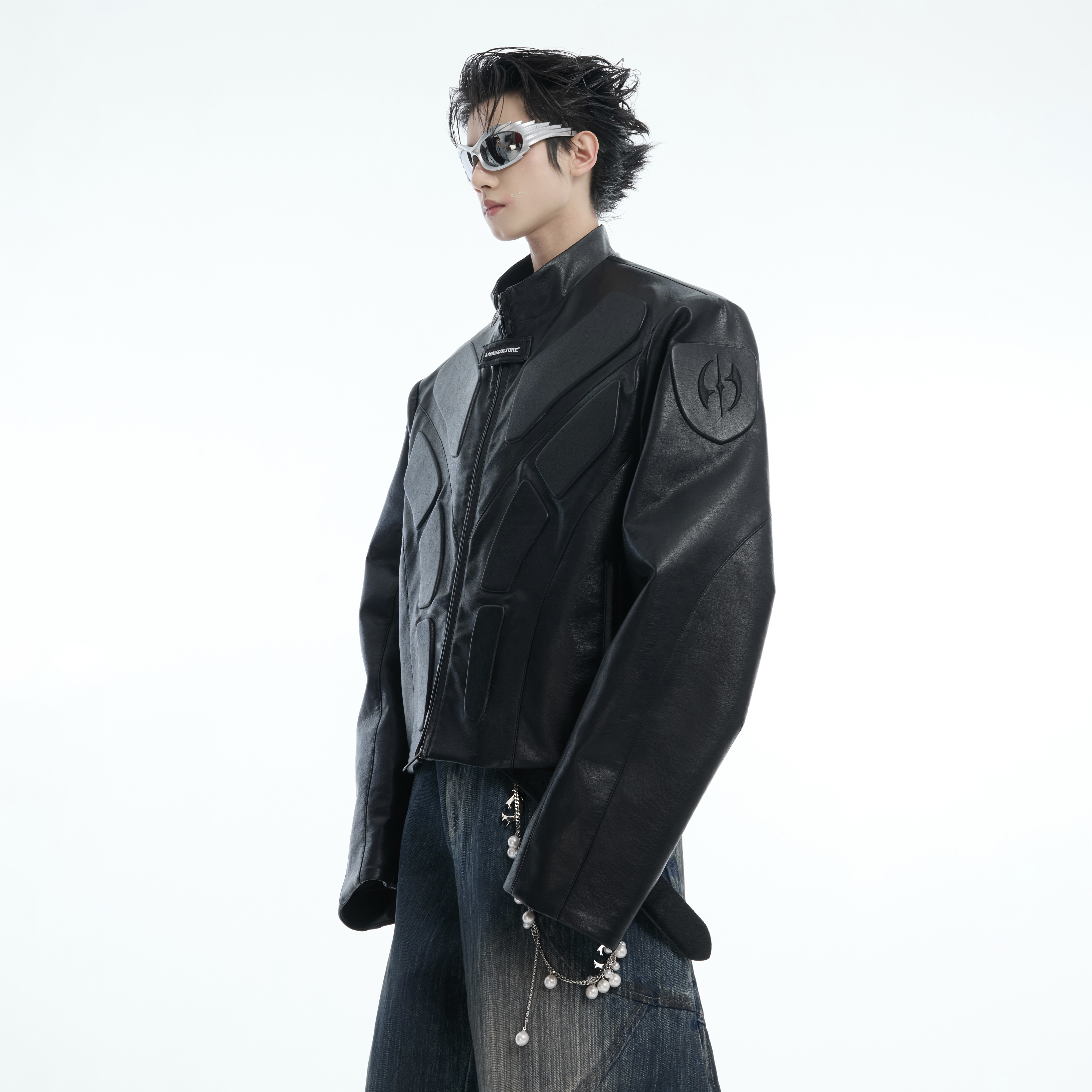 ArguE CulturE Niche Three-dimensional Relief Deconstructed Stand Up Collar Silhouette Jacket Motorcycle Armor Leather Jacket Men