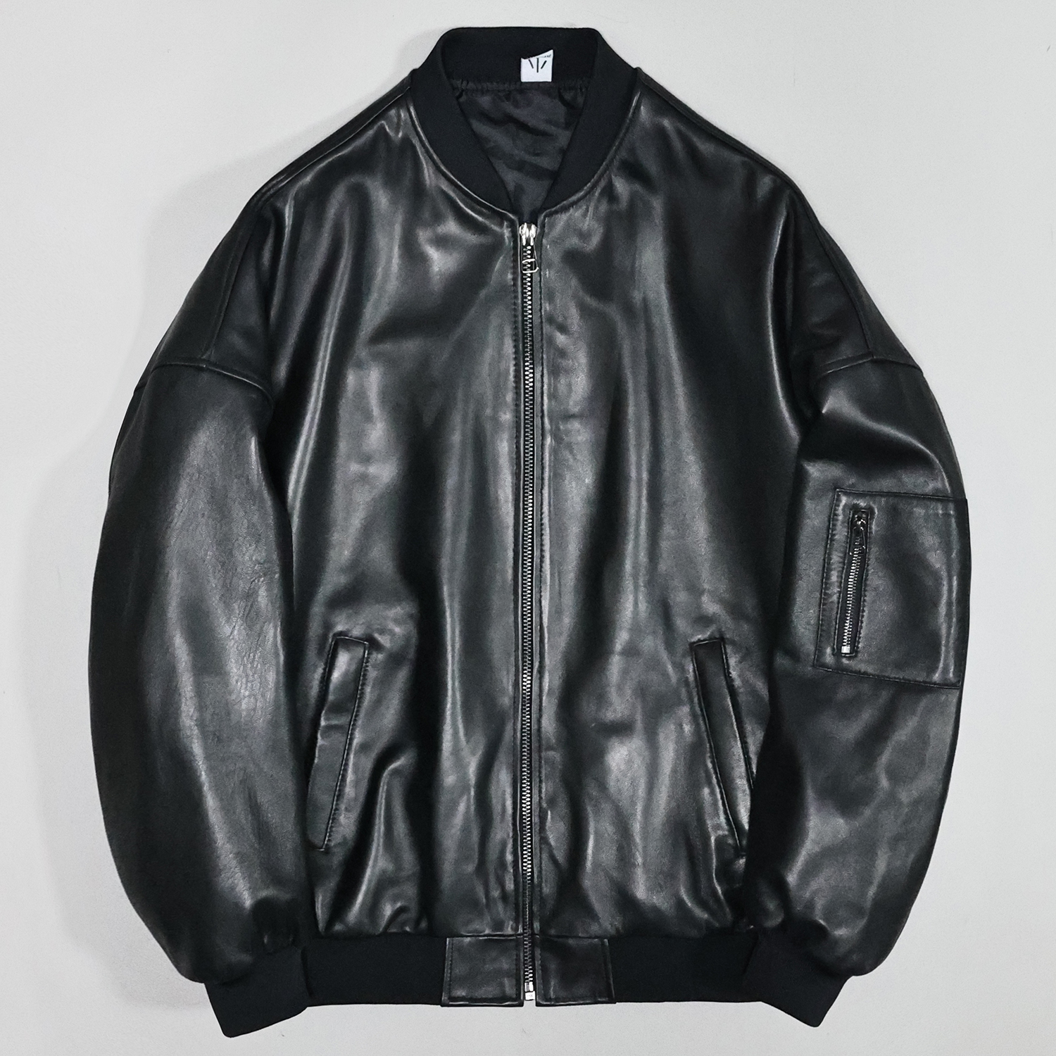 The top layer sheep leather jacket for men and women is loose Korean version of youth simple and lazy boyfriend style casual baseball clothes