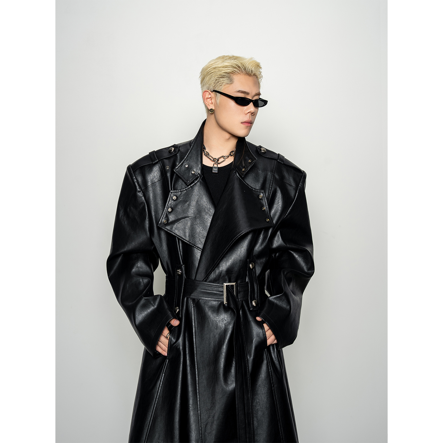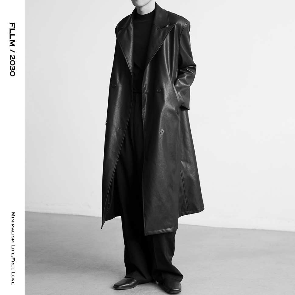 DBW Decoblewin vintage high-end lapel waist leather coat masculine pioneer silhouette long coat