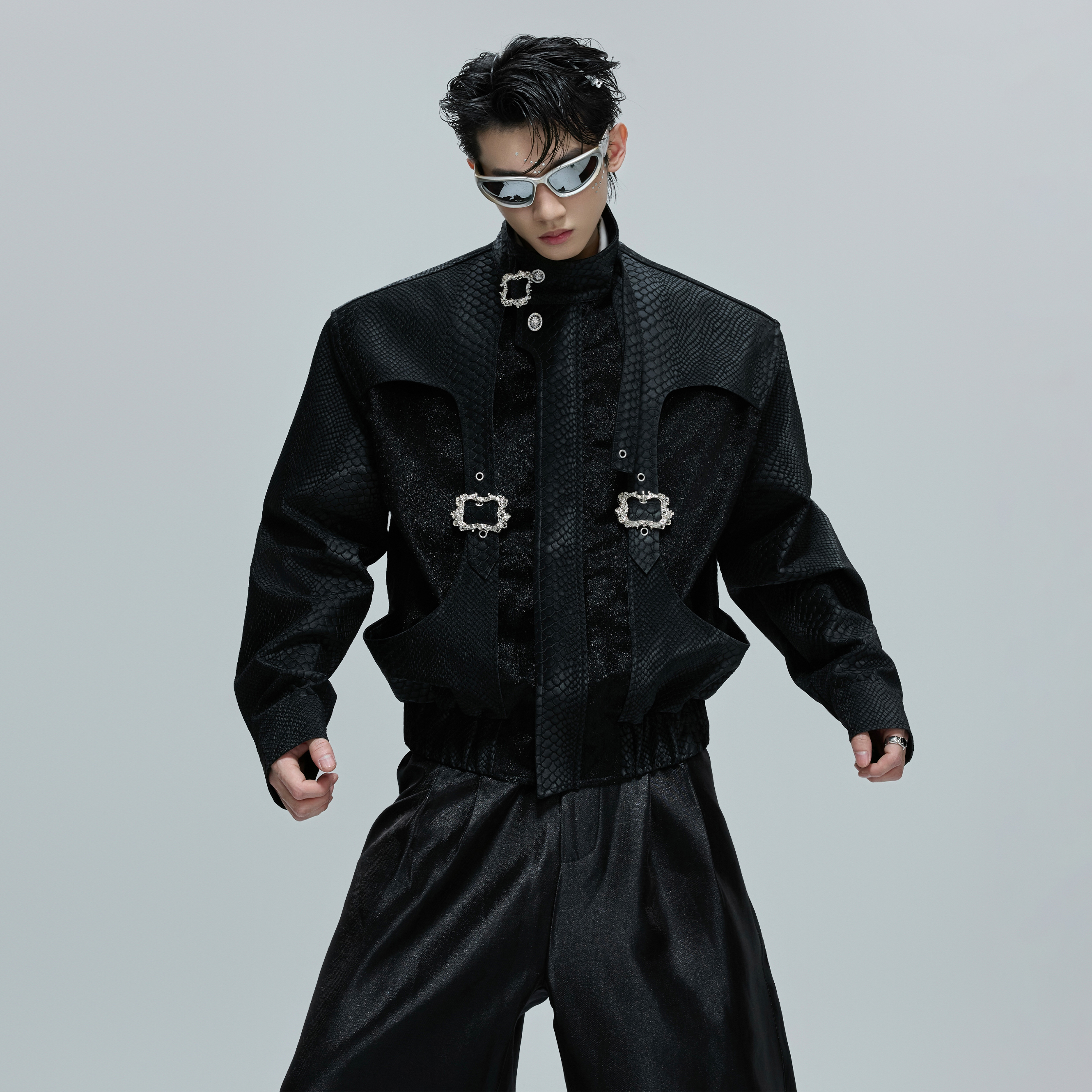 American retro pebble pattern leather jacket men's spring and autumn new ruffian handsome motorcycle suit short cargo stand-up collar jacket trend