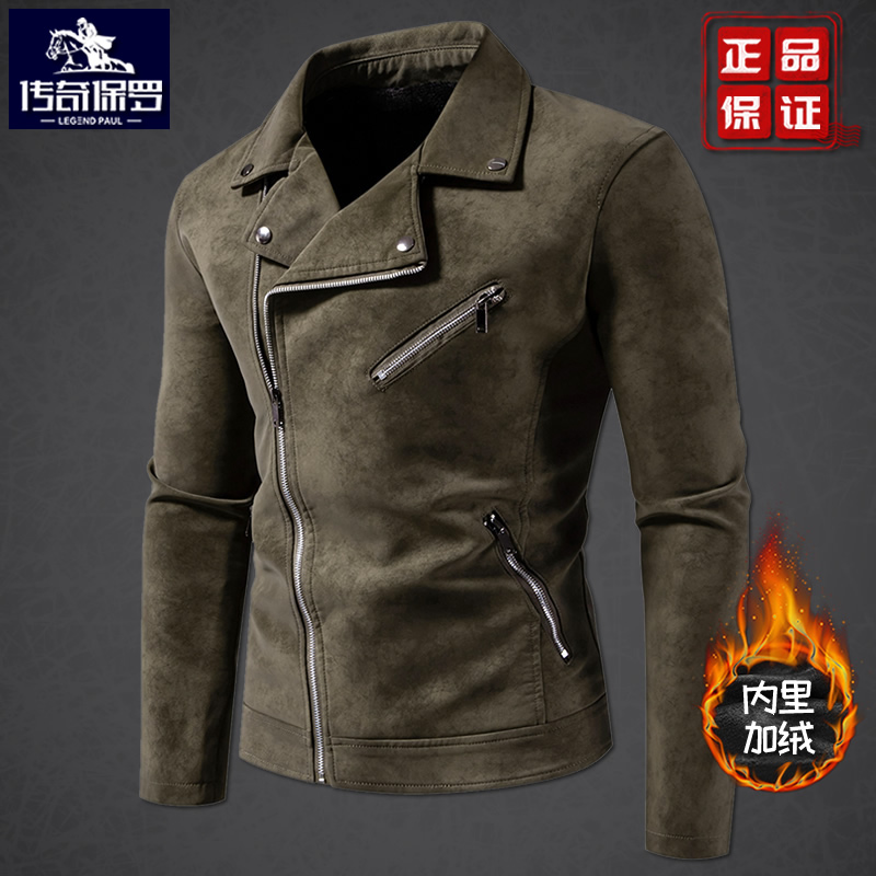 Paul diagonal zipper jacket men's leather jacket American vintage lapel soft leather jacket ruffian handsome Harley motorcycle suit