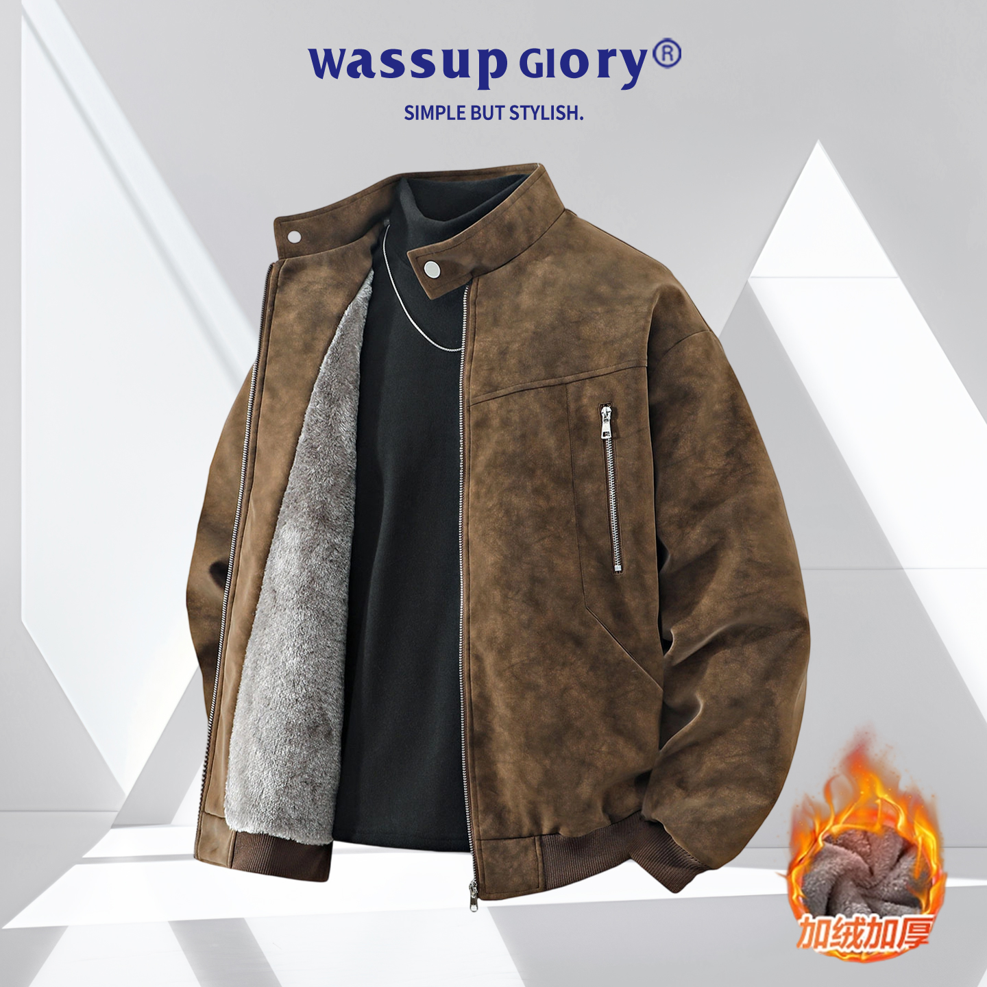 WASSUP GLORY, imitation suede leather jacket, men's ruffian, handsome autumn and winter, fleece and thickened warm leather jacket trend
