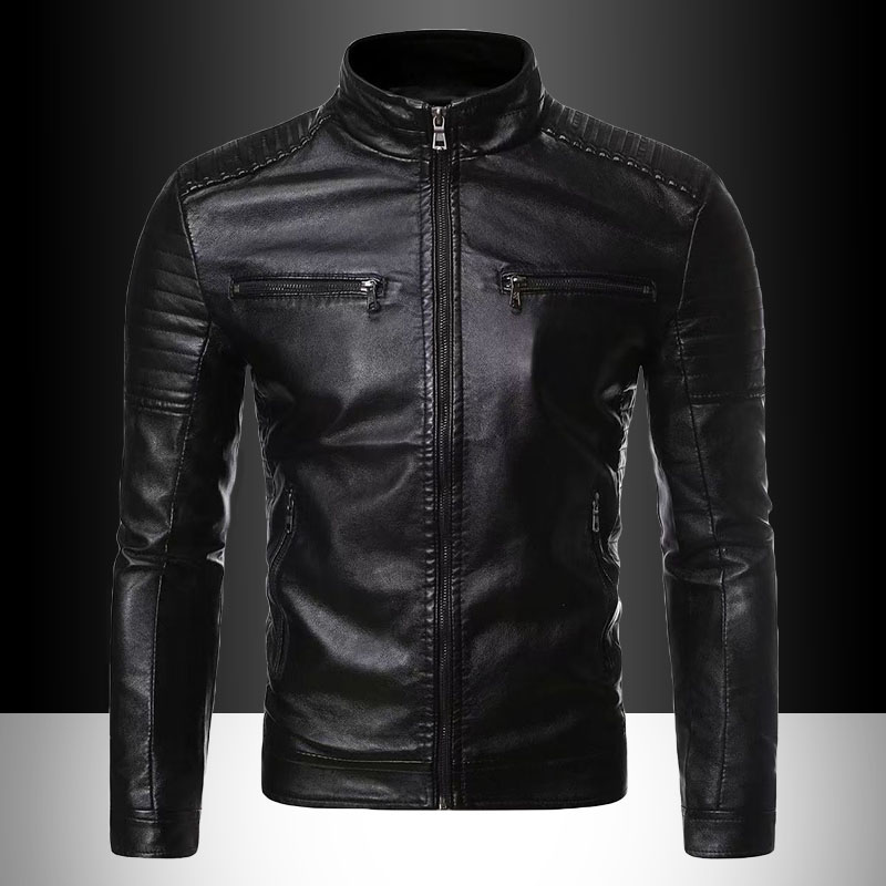 Spring and Autumn Men's Retro Stand Up Collar Leather Jacket Motorcycle Riding Leather Jacket Handsome Youth Trend Casual Leather Jacket Windproof