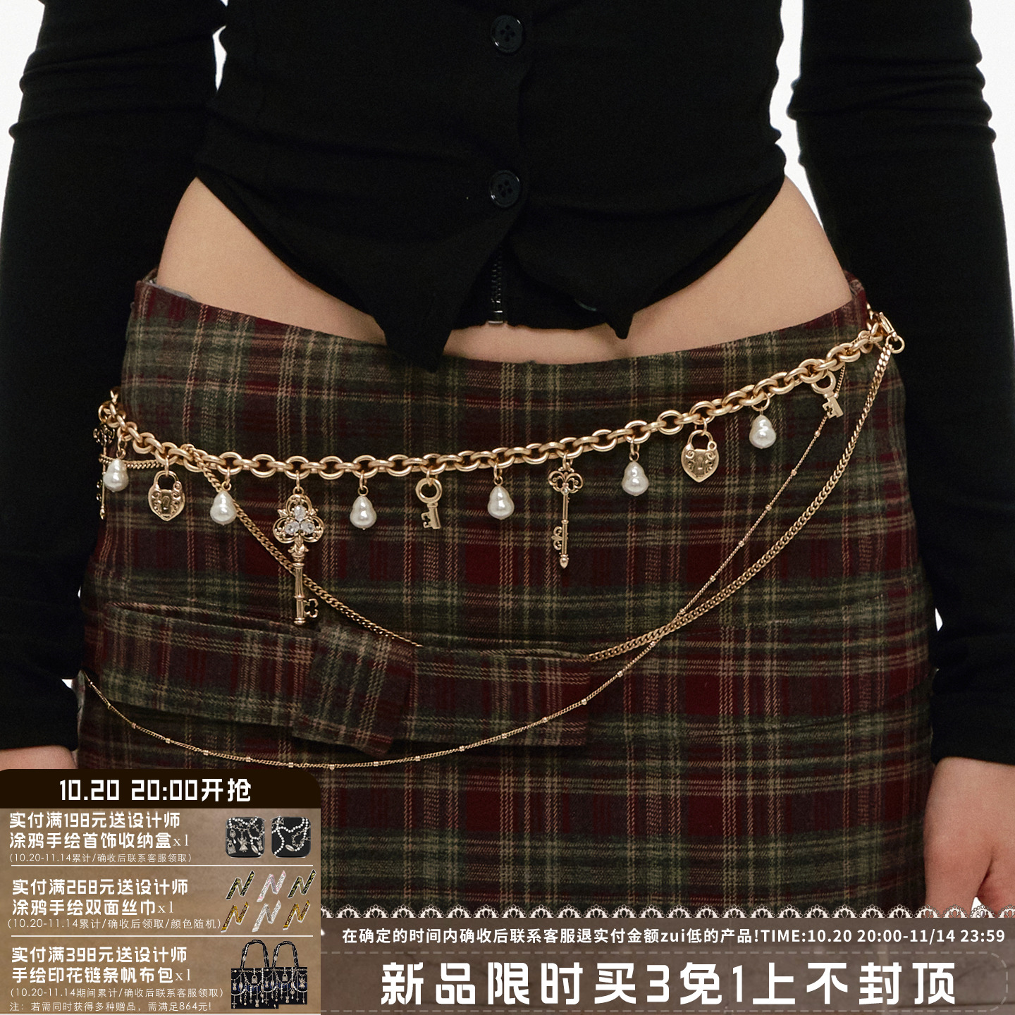 SUMIYAKI Retro Love Lock Cylinder Series Multi-layer Pearl Waist Chain Niche Pendant Girl