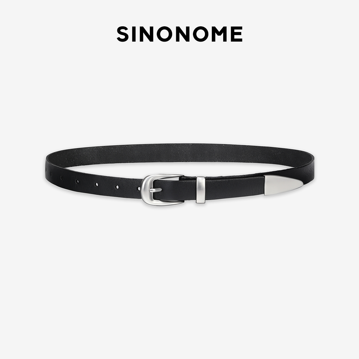 SINONOME Italian imported top layer cowhide distressed silver-plated buckle belt genuine leather horsehair belt for men and women