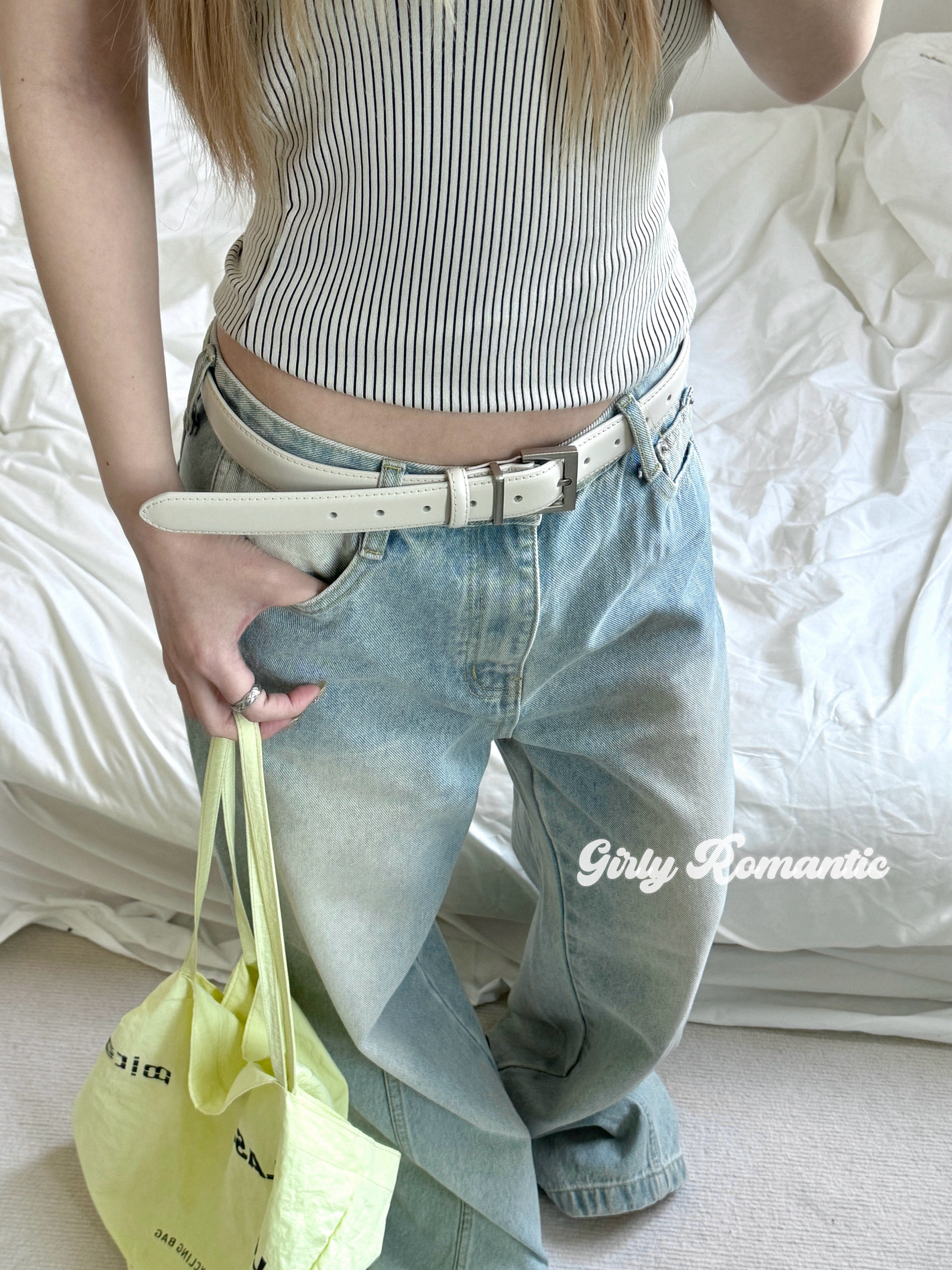 Minimalist cleanfit oxygen feeling white belt cowhide belt women's ins style high-end accessories are versatile